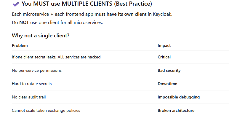🛑 Service B would need SERVICE C’s client_secret (very dangerous).