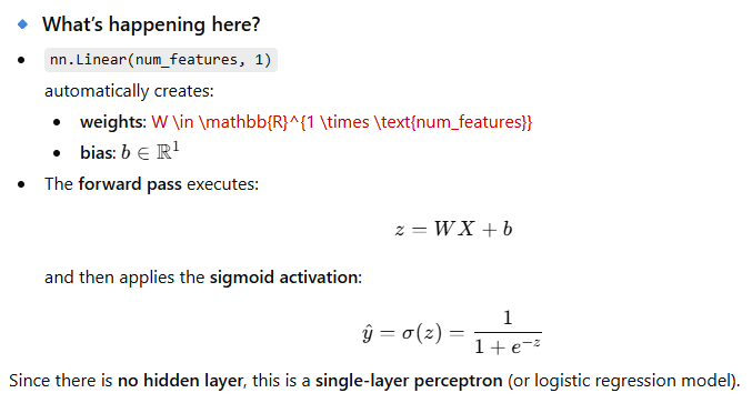 loss = -(y_train_tensor * torch.log(y_pred) + (1 - y_train_tensor) * torch.log(1 - y_pred)).mean()