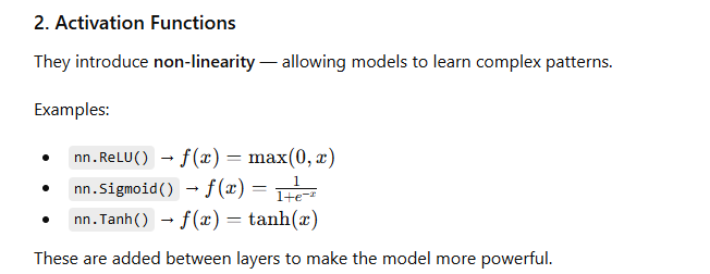 nn.ReLU() → Rectified Linear Unit, outputs max(0, x)