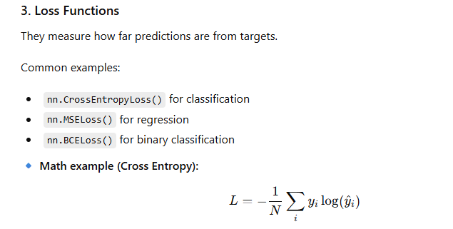 Loss functions measure how far the modelβs predictions are from the actual values.