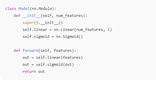 Each layer (linear1, relu, linear2, sigmoid) is created separately.