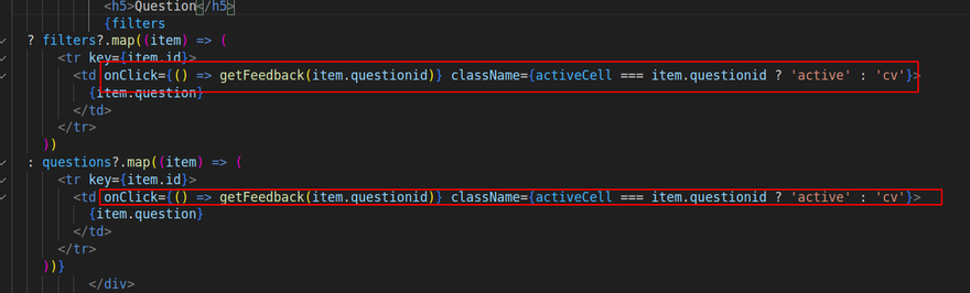 <td onClick={() => getFeedback(item.questionid)} className={activeCell === item.questionid ? 'active' : 'cv'}>