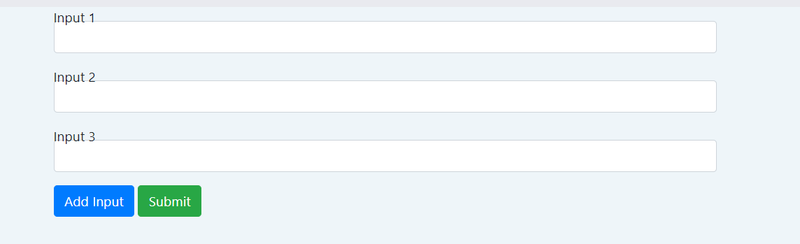 This setup allows users to dynamically add input fields by clicking the "Add Input" button. The form can be submitted with the dynamically added input fields, and you can handle the data in your Laravel controller based on the array notation used in the input names (input1[], input2[], etc.).