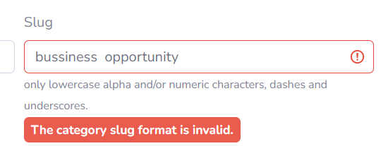 Additionally, you can use the @enderror directive to achieve the same result as @error('category_slug'). Here's an alternative way to display the error message: