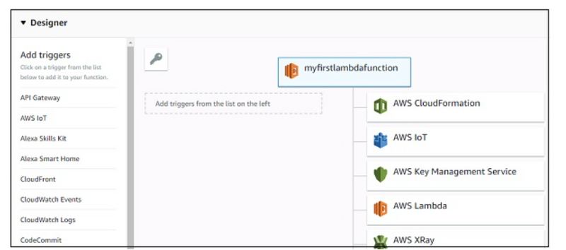 The triggers that are needed to added to AWS Lambda function are displayed as follows −