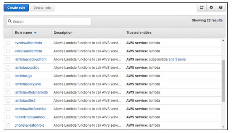 Click Create role button to create the role. All the roles created are displayed as shown −