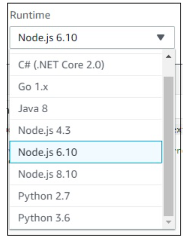 You can observe the following details in Runtime dropdown −