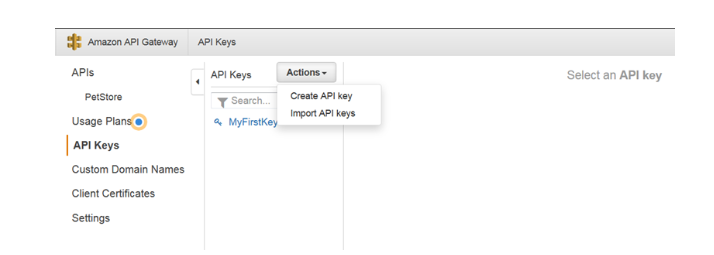 Enter an API key name (for example, MyFirstKey) in the Name input field.