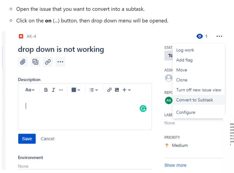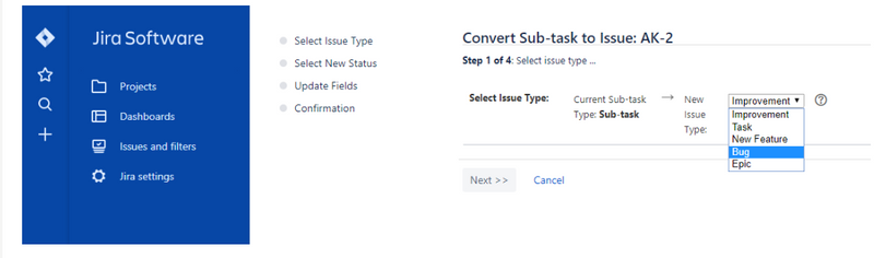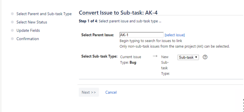 - Subtask issue type can be converted into another issue . Converting a Sub-task to issue Move to the details of a subtask and then click on the more(...) button, and then click on the Convert to Issue.