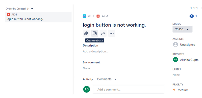 Teams work together to break down the pieces of work into issues. Issues can represent software bugs, a project task, subtasks, or any other project work. Jira project comes with the default issue type, and you can also create your own issue type.