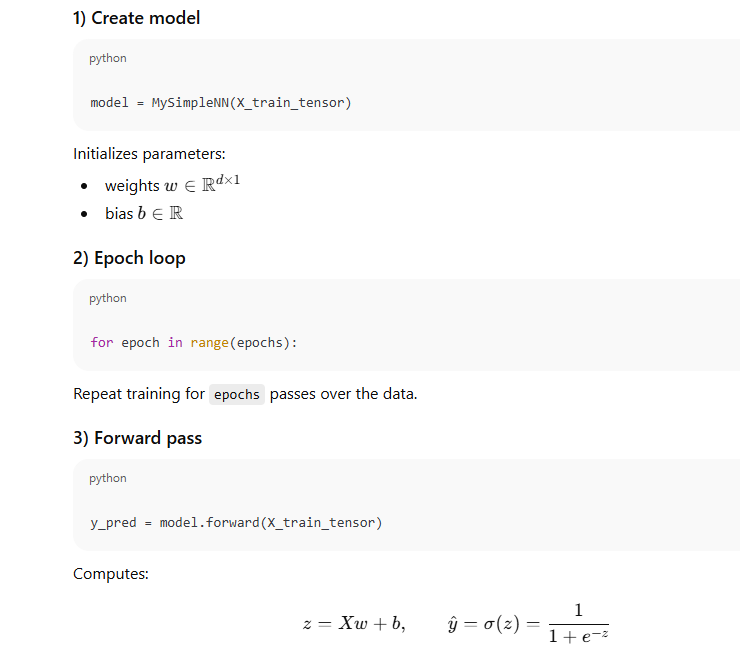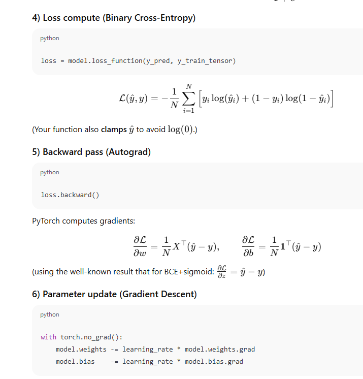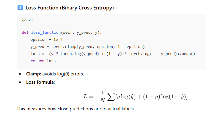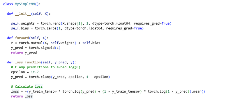 loss = -(y_train_tensor * torch.log(y_pred) + (1 - y_train_tensor) * torch.log(1 - y_pred)).mean()