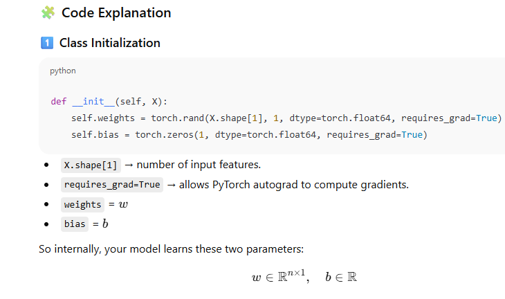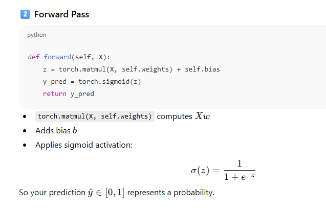 z = torch.matmul(X, self.weights) + self.bias