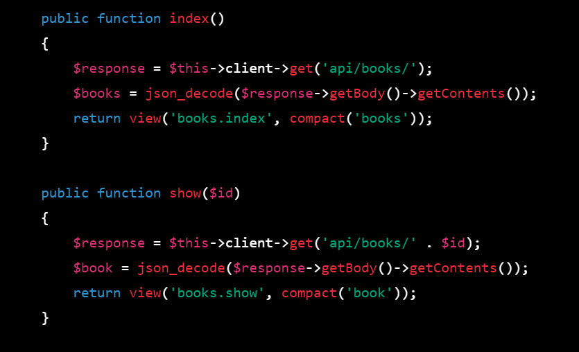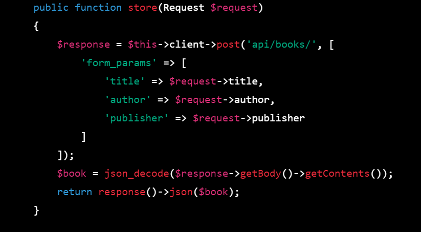- Define a Laravel controller that calls the Django API using GuzzleHTTP