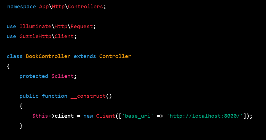 $this->client = new Client(['base_uri' => 'http://localhost:8000/']);