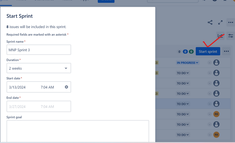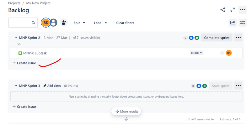 You can drag and drop an issue from the Backlog section to the relevant sprint, or we can say that we can move the issue from the Backlog section to the relevant sprint.