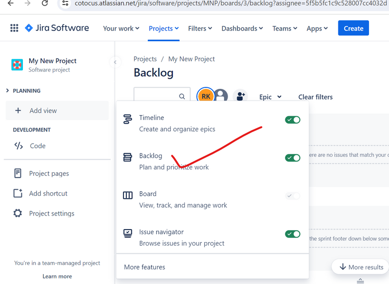 In the above screen, we can see that the issue is created and it is placed in the Backlog.