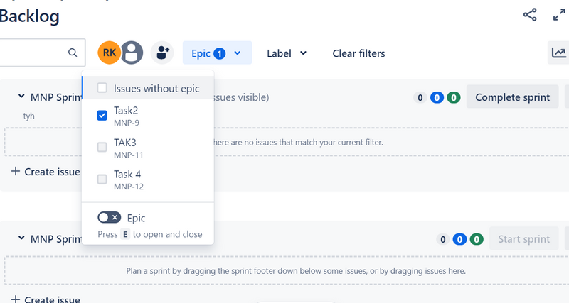 how to add multiple epic for issue and sprint