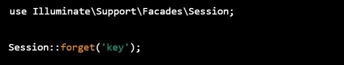 To delete a single value from the session, you can call the forget method and pass in the key of the value you want to delete. For example: