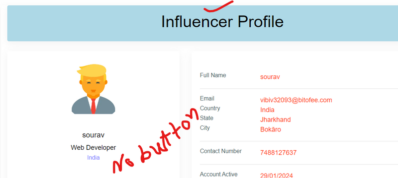 if it is not login and influencer profile