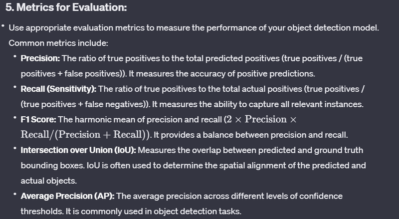 Evaluating the performance of an object detection model is a crucial step in assessing its effectiveness and ensuring that it meets the requirements of a specific task or application. There are several metrics and evaluation methodologies commonly used for this purpose. Here's a step-by-step guide on how to evaluate the performance of an object detection model: