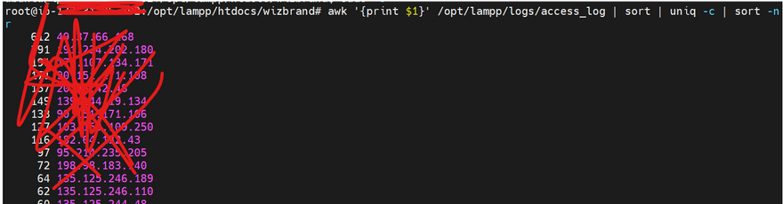 awk '{print $1}' /opt/lampp/logs/access_log | sort | uniq -c | sort -nr