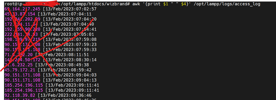 extract the IP address and date fields from the access_log file(awk command to extract specific fields)