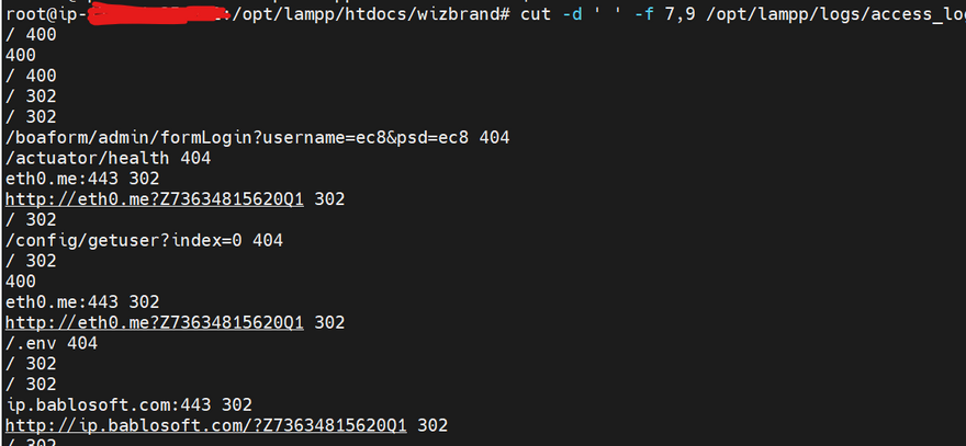 extract the URL and response code columns from the access_log file(cut command to extract specific column)