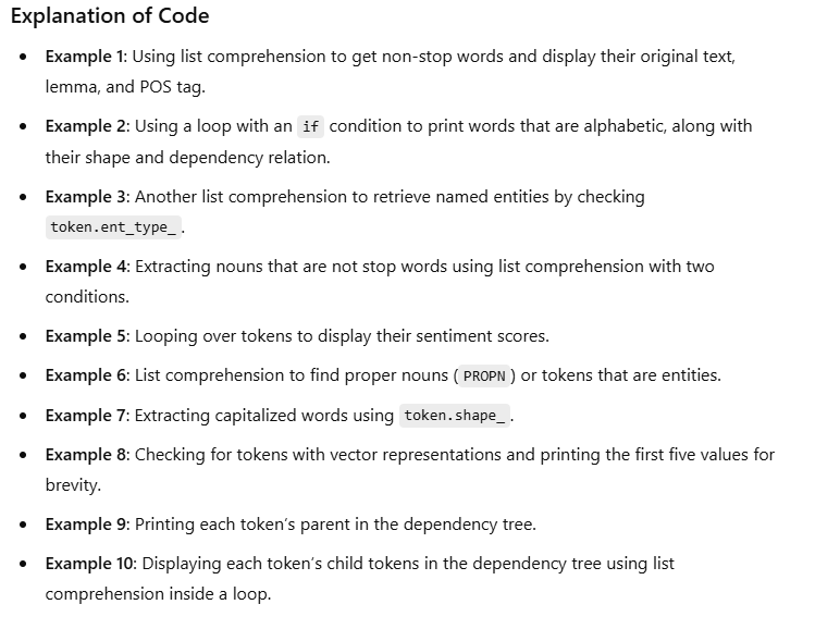 print(f"Word: {token.text}, Shape: {token.shape_}, Dependency: {token.dep_}")