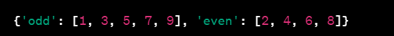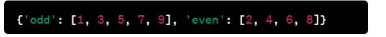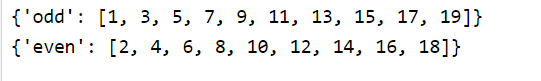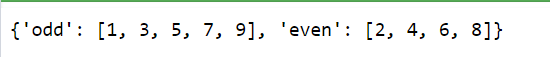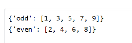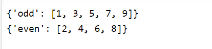 result_odd = {'odd': []}OR result_dict[key] = []inside forloop