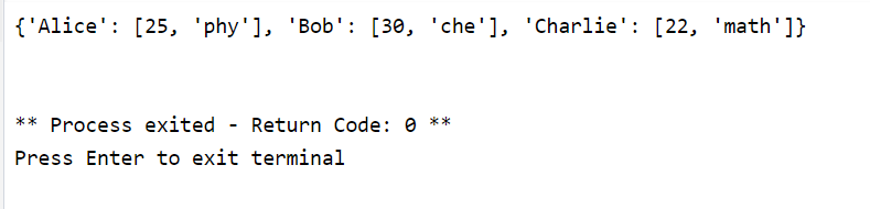 "group1": {"name": "Alice", "age": 25,"sub":"phy"},