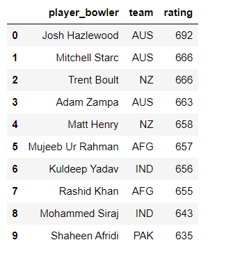 df=pd.DataFrame({'player_bowler':bowler_td_list,'team':bowler_team_list,'rating':bowler_rating_list})