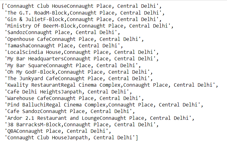 for i in soup.find_all('div', class_="restnt-loc ellipsis"):