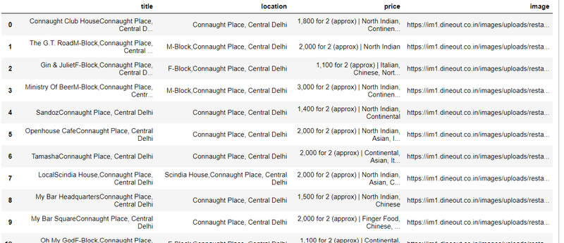 df= pd.DataFrame({'title':restaurant_title,'location':restaurant_location,'price':restaurant_price,'image':restaurant_images})