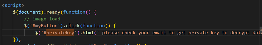 $('#privatekey').html(' please check your email to get private key to decrypt data in future purpose');