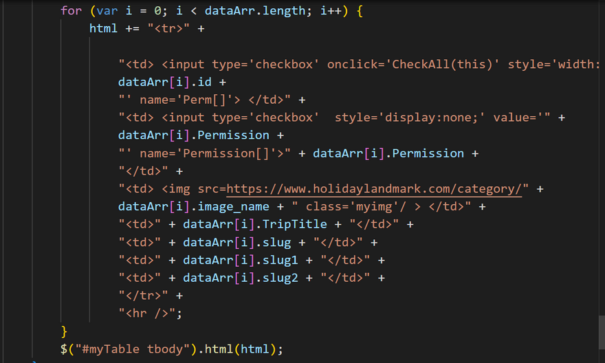 html += "<tr>" +