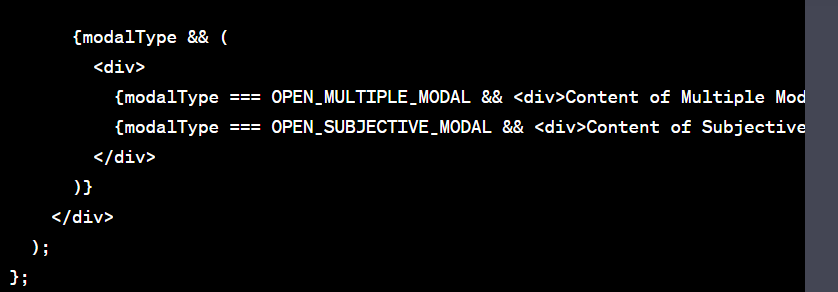 {modalType === OPEN_SUBJECTIVE_MODAL && <div>Content of Subjective Modal</div>}