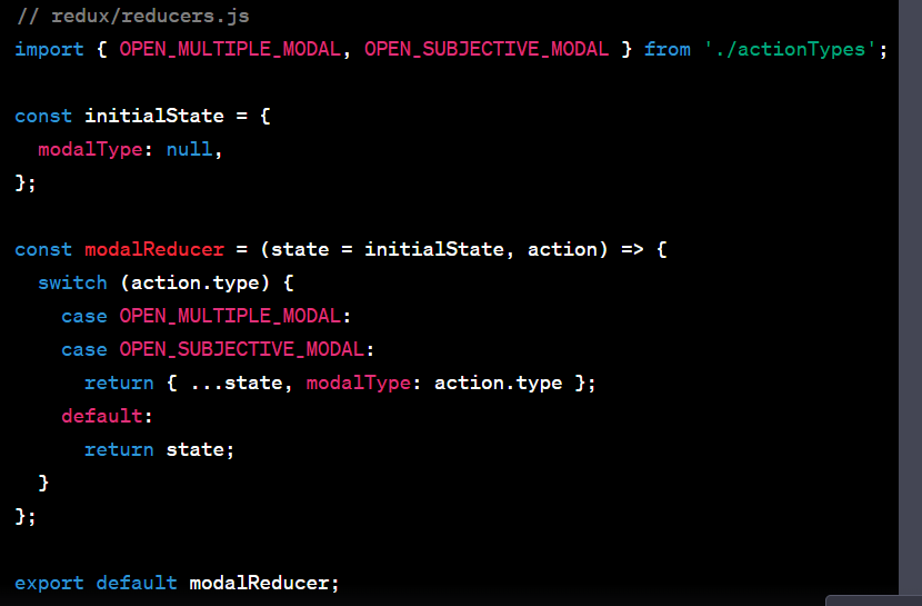Create a reducer: Set up a reducer to handle the actions dispatched to open different types of popup modals randomly. The reducer will update the state to indicate which modal is currently open.