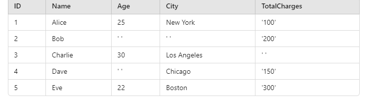 # Step 2: Filter out rows that have spaces in any column