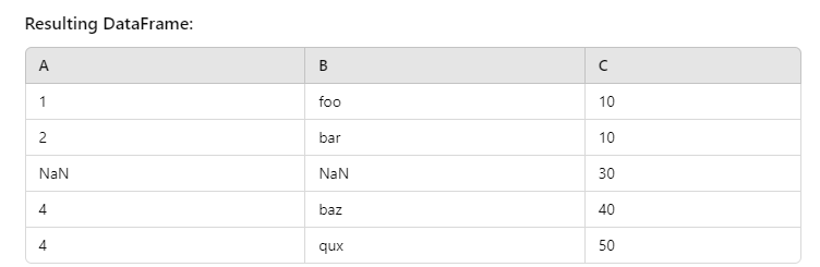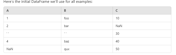 'C': [10, np.nan, 30, 40, 50]