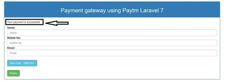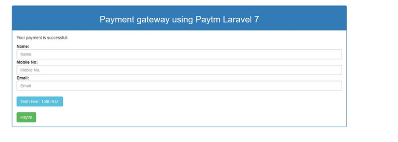 Visit the /pay route in your browser to initiate a Paytm payment. After a successful or failed payment, the user will be redirected to the /paytm-callback route, and you can handle the callback accordingly.