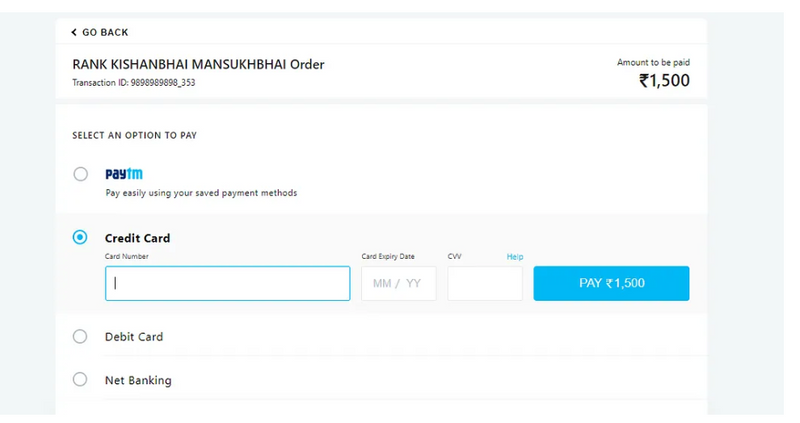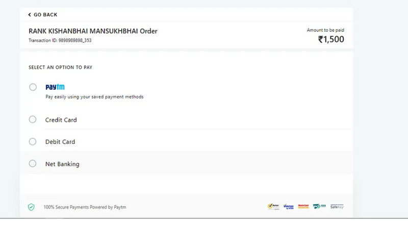 Fill the form and click on submit button it will redirect to the Paytm payment page.