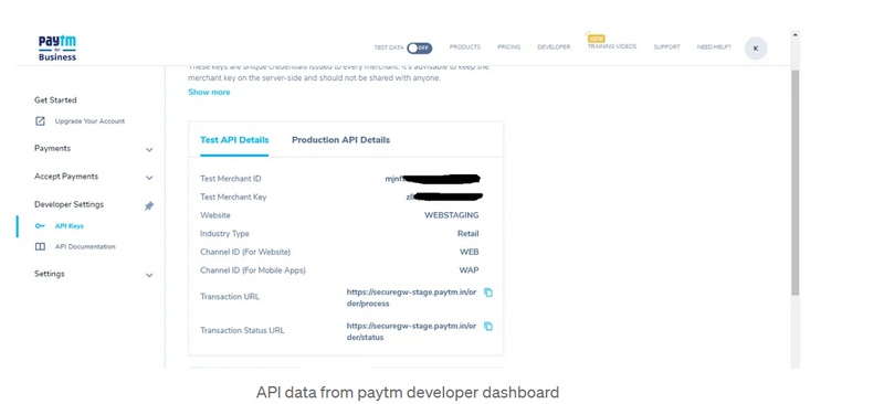 Step 3 : Login into Paytm developer website and generate api key and secret. Click Here