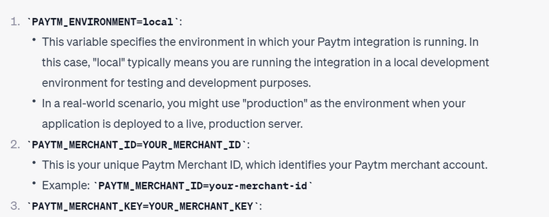 This variable specifies the environment in which your Paytm integration is running. In this case, "local" typically means you are running the integration in a local development environment for testing and development purposes.