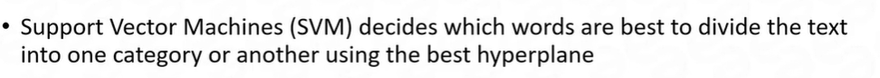 kernel='linear': This parameter specifies the type of kernel to be used in the SVM model. In this case, we set the kernel to 'linear', indicating that a linear kernel will be used. A linear kernel assumes that the data is linearly separable, and it defines the decision boundary as a hyperplane in the feature space.