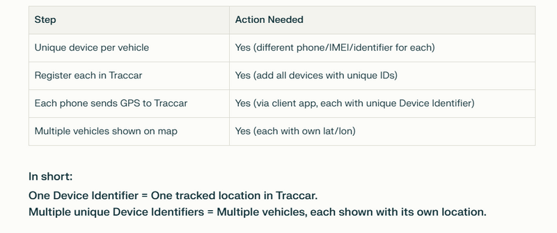 Now, each vehicle in your Laravel app is mapped to a unique Traccar device.