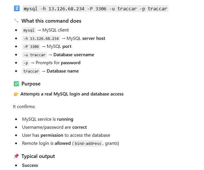 2️⃣ mysql -h 13.126.68.234 -P 3306 -u traccar -p traccar