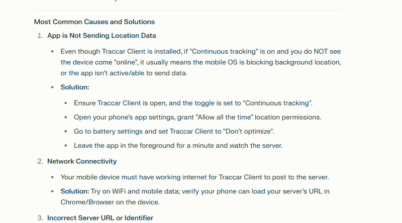 The device should now appear as “Online” in Traccar if all info matches and the server is reachable.