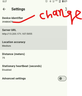 Enter this identifier in the Traccar client under “Device Identifier.”