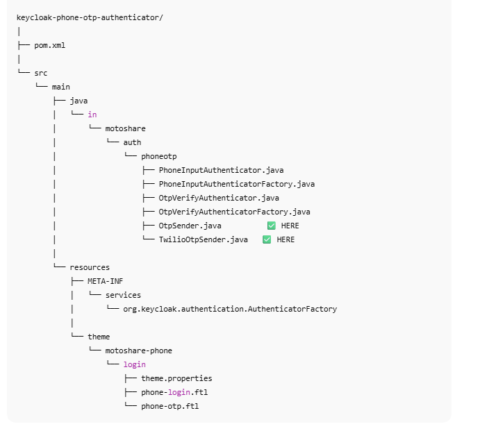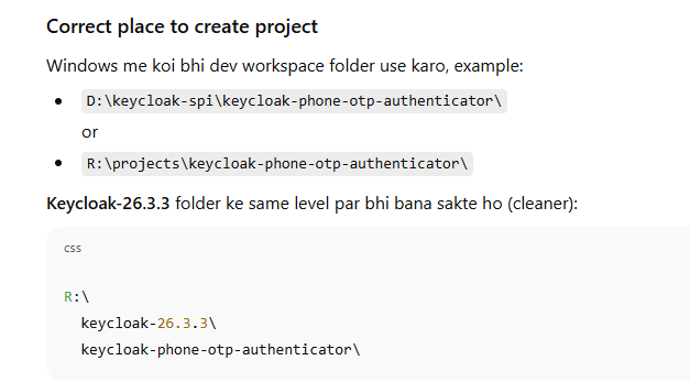 Note:keycloak-phone-otp-authenticator/ folder Keycloak ke install folder ke andar nahi banana.