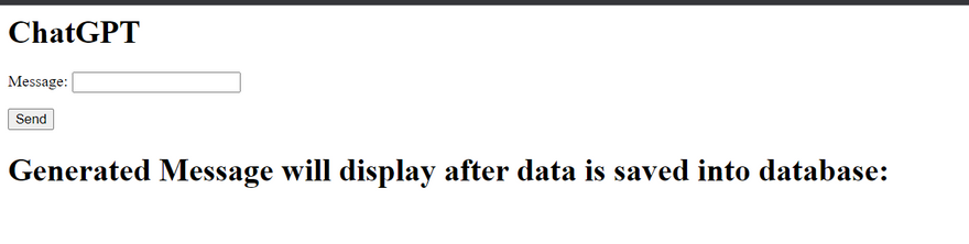Enter a message in the input field and click "Send". The generated response from ChatGPT will be displayed on the page.